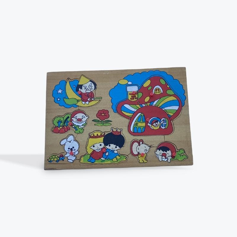 This charming tray puzzle invites little hands to lift, look and match eight pegged pieces to their picture homes. Bright characters spark simple stories and conversations while the sturdy board keeps everything together between solves.